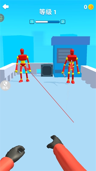 面对多个机器人时,依次瞄准投掷飞刀,逐个击破。