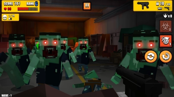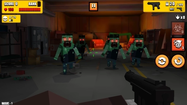 1、玩家要在地图里射击僵尸,瞄准僵尸的头部开枪,避免有任何僵尸靠近自己。