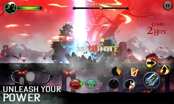1.通过虚拟摇杆操控角色移动,结合普通攻击、跳跃动作与三个独立的技能按键,能够组合出丰富多样的连招;同时,利用精准的闪避操作,可以灵活应对敌人发起的猛烈攻势。