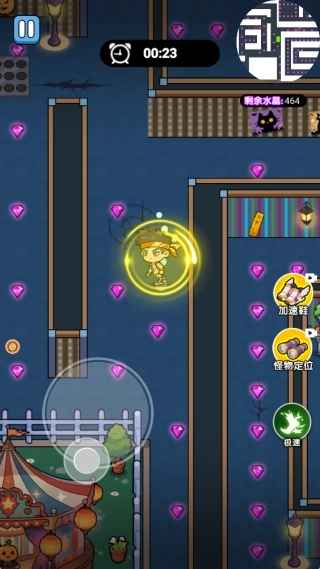 3、收集地图里的紫色水晶能量,启动迷宫出口的机关,指引角色从出口离开以完成逃脱任务。