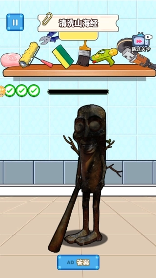 4、依据关卡评分标准完成清洁任务,即可解锁神兽图鉴系统;若在操作过程中遇到瓶颈,可选择跳过当前关卡。
