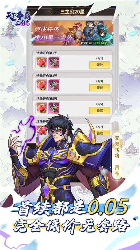 2.吕布赠送活动:无需充值即可获取满星吕布,提升了游戏的可玩性与公平性。