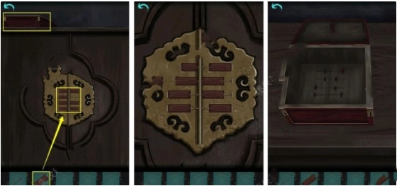 16、将【铜锁块】插入指定空位,参考盒子上的提示调整机关,解锁柜子并获取【茶壶】。
