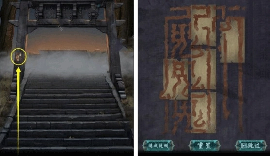 12、取得【天字活块】,将其放入窗边凹槽,根据石碑上的回文诗句线索,调整机关为“天连水尾水连天”,成功后可打开窗户并获得【灯笼】。