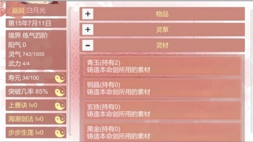 当角色面板特质栏中没有本命剑时,赠送灵材同样能够提升好感度。重复赠送的话,只会增加保底数值。