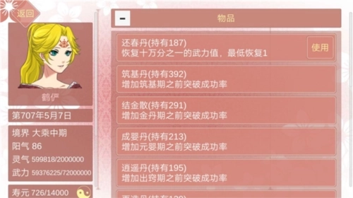 当角色的武力值未达到自身最高上限时,赠送还春丹能够提升较多的好感度。