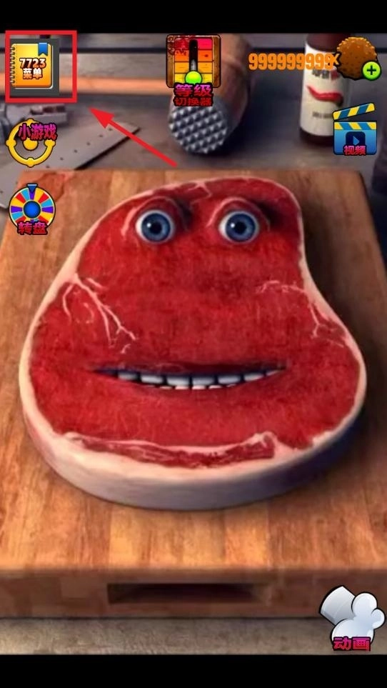 打开查理牛排游戏,点击菜单