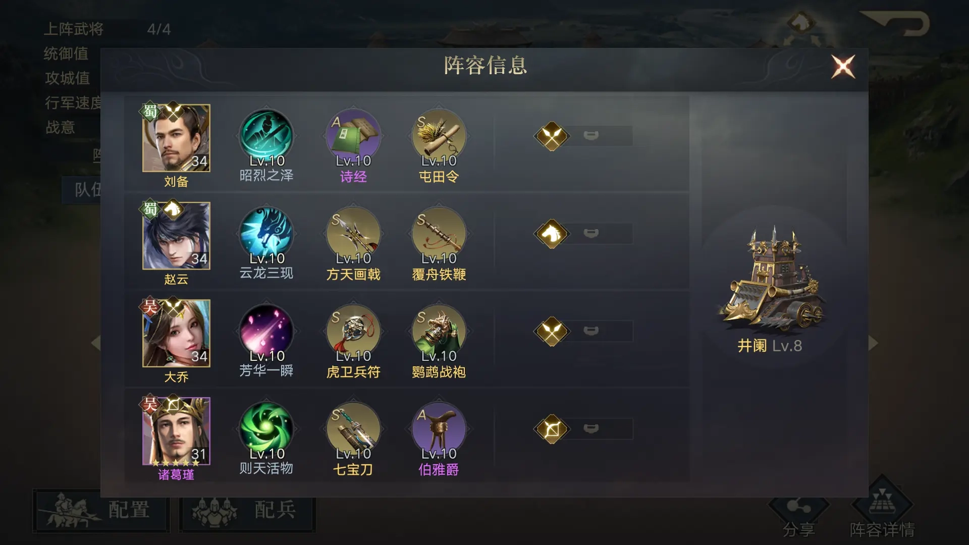 各位可以留意一下,那位1御的辅助型武将刘虞值得培养,他能和御值偏高的武将搭配得不错。用这套阵容远程攻打7级地获取经验时,兵力损耗的控制效果还算理想。