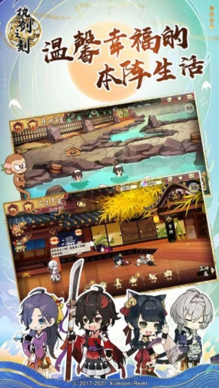 由顶级画师精心绘制的唯美和风场景,搭配Q版战斗模型与动态特效,再融合京都传统风格的背景音乐,共同营造出沉浸式的东瀛氛围。