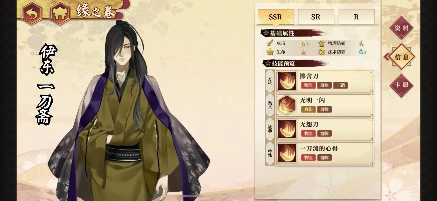 初期推荐挑选SSR或UR级别的剑士,像伊东一刀斋、法朗索瓦·卡戎、青波征一郎、鸨羽这类角色,他们具备较为出色的基础属性与成长潜能。