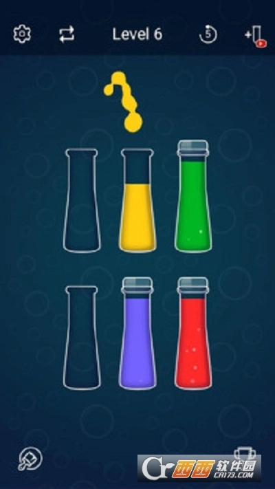 1、玩家需要做的就是分离彩水,将相同颜色的彩水倒入相同的玻璃瓶中;