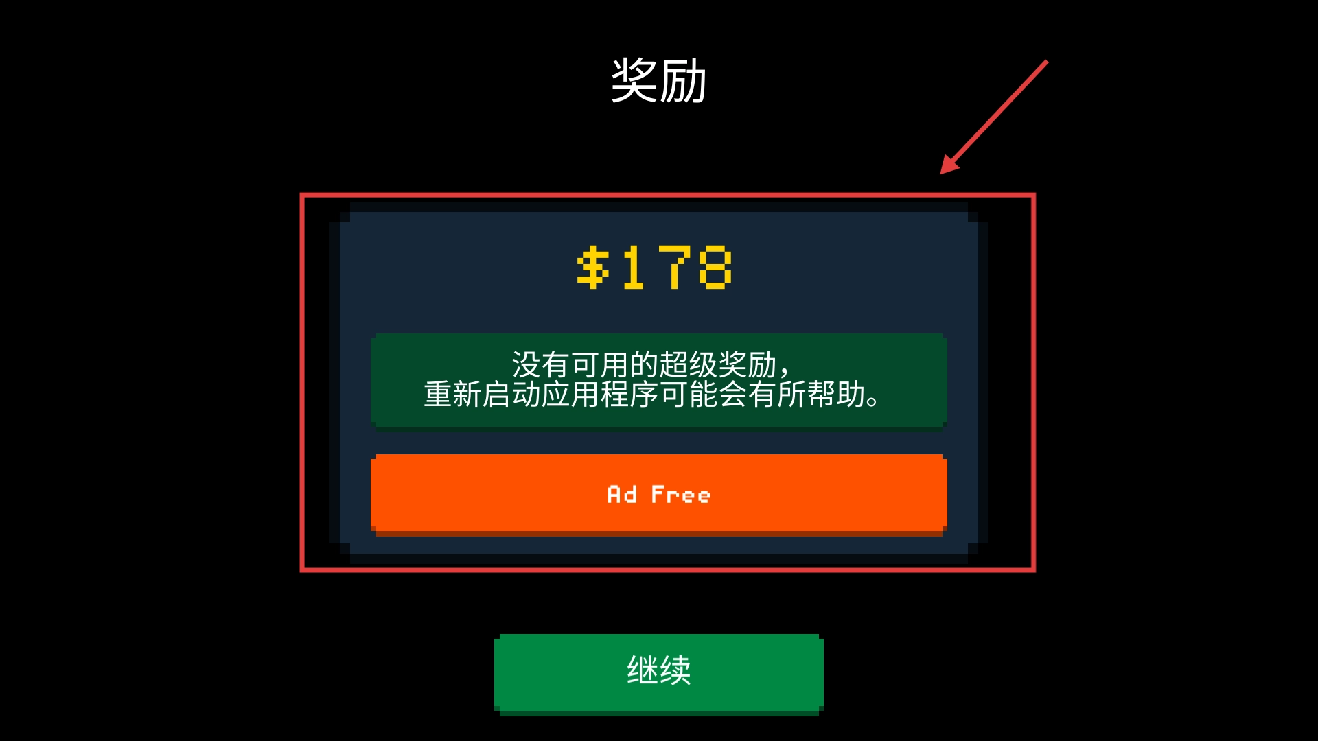 4、战斗结束后可领取【$178】金币奖励,点击“继续”即可返回主界面,你可以使用这些奖励来升级装备或者解锁新的内容。