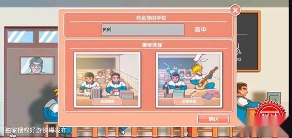 1、启动《高考工厂模拟》游戏,点击“开始游戏”按钮,第一步是创建一所学校,为其拟定名称后,再选择游戏难度;