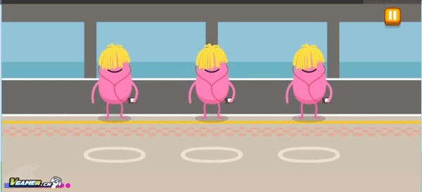 4、第四关要在火车到来前将三个角色全部移至安全区域