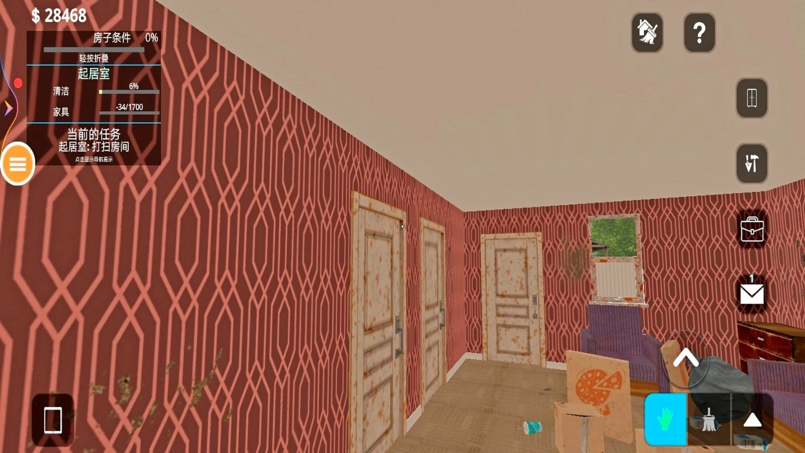 1.游戏始于彻底的房屋打扫与整理。玩家需清除积尘、归置杂物,修补破损的墙面与地板,为后续装修奠定洁净基础。