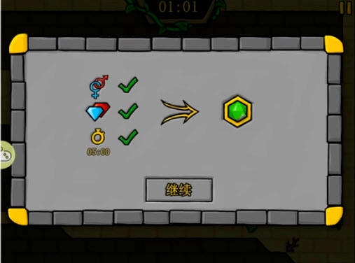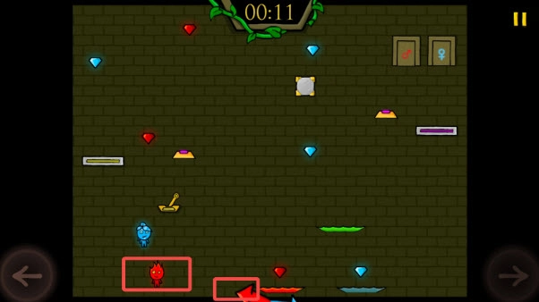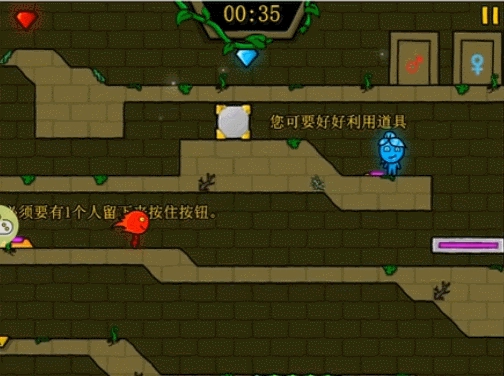 要留意水女孩与火男孩只能接触和自身属性相符的物体哦——比如水女孩属于水属性,要是她碰到火的话,游戏就会宣告失败。