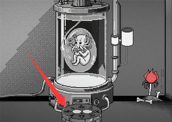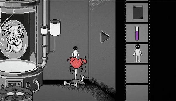 10、然后回到培养皿所在房间,点击培养皿前面的祭坛。左侧放上老鼠心脏,右侧放上人偶,唤醒克苏鲁幼崽。然后将毒药对准喂食口使用,之后培养皿玻璃破碎,游戏结束。
