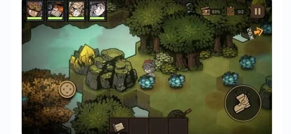 想要拿到上古卷,需要先拿到两个宝石打开机关,在出现对话选择的时候选择拿走,之后跟着箭头走原本巨石挡住的路,即可离开。这一关可以开启战斗的二倍速。这是另外一个探索点的位置。在最左边尽头的最边缘。