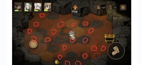 如果已经探索右边的一半地图中途退出的话,再次进入游戏关卡进入传送阵会直接传送到右边的地图,那么就会卡在方框这个位置找不到出路,这个时候就要重新进关卡,不要进传送阵,把左边的地图也刷出来就好了。