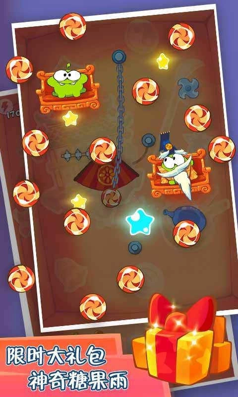 5、玩家得通过切断绳子,让各式各样的糖果和食物掉进两只可爱小怪物的嘴巴里!