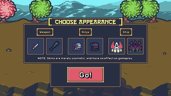 1、首先启动游戏,接着挑选初始装备,你可以从武器、角色和飞船里选择自己喜欢的,之后就能开启游戏了。