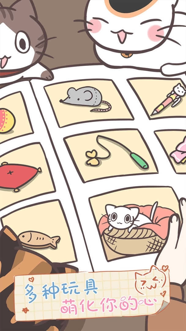 这是一款在自家的院子里,放置一些猫咪喜爱的食物,摆放猫咪中意的猫玩具,吸引各种不同品种的喵星人来玩耍的放置类收集休闲游戏。游戏中有多达几十种别具一格的萌猫,不同风格的房屋更是会吸引一些珍品喵咪的大驾光临,还能用手机相机记录下喵咪的千姿百态。琳琅满目的玩具供你讨好猫主子的欢心。主子中意你了,会赏你五花八门的“宝贝”。