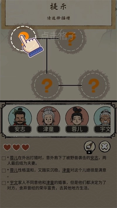10、消失的线索会自动帮你把对应的头像放到格子上;