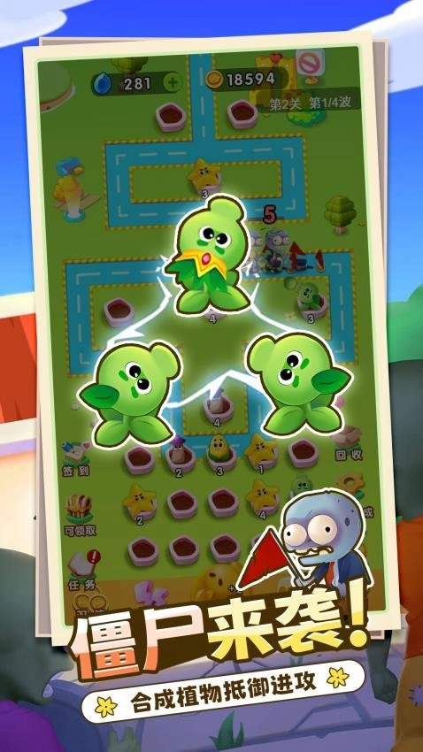 歪塔守阵地是一款超萌卡通画风的策略塔防游戏,只要巧妙布置植物炮台抵挡僵尸的入侵,进攻路线是固定的,仔细观察地形再部署阵型,你可以尽情脑洞大开,尝试不同的布阵方案,持续攻击消灭所有僵尸。