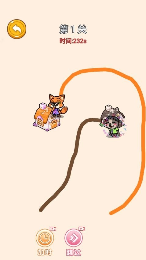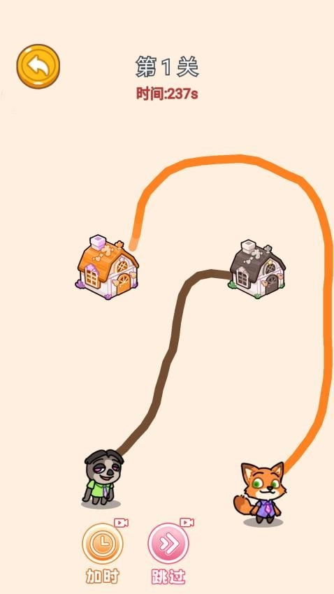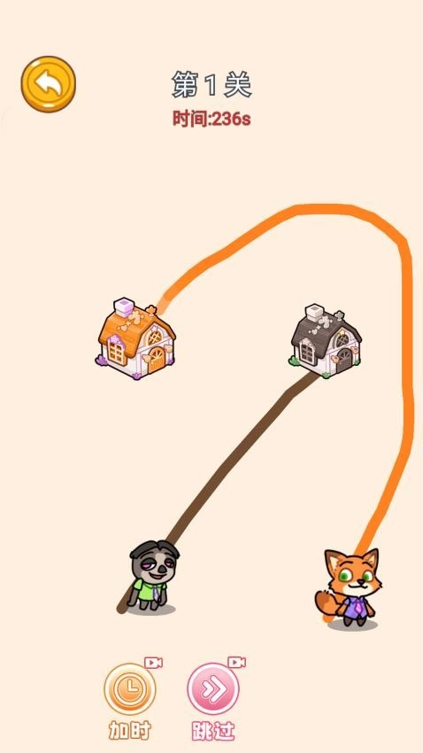 1、进入到第一关之中,你可看到相应的情况,为这两个动物找到它们的家。
