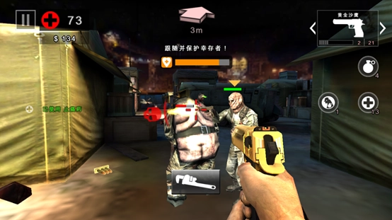 新手建议开启自动攻击模式:近战用扳手能直接消灭普通僵尸,远程敌人进入视野后系统会自动锁定并射击。屏幕下方有武器切换按钮,点击就能在当前携带的武器中快速切换。另外,玩家也可以把自动射击改成手动开火,以提高打击的精准度。