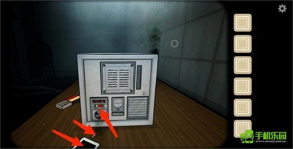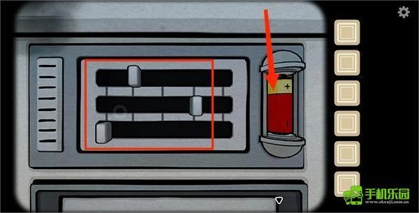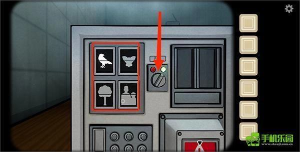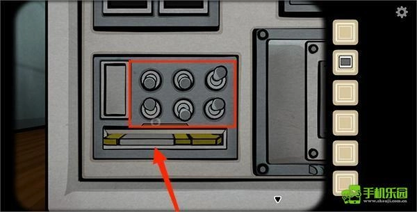 4、接着转向左侧来到另一面,把开关安装在图中亮灯的位置,再依据之前的线索点击图片