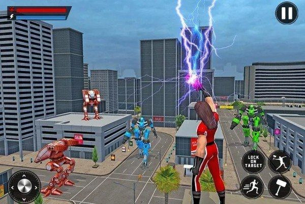 在《铁锤人机器人英雄》里,玩家可以化身英雄雷神守护城市。游戏采用精致的3D建模,构建出一个宏大的城市场景。城市中时常会涌现出大量恐怖敌人,玩家需要运用自身能力将他们击败。游戏还会为玩家提供强大的装备与武器,合理搭配这些装备武器,就能施展出威力十足的连招!