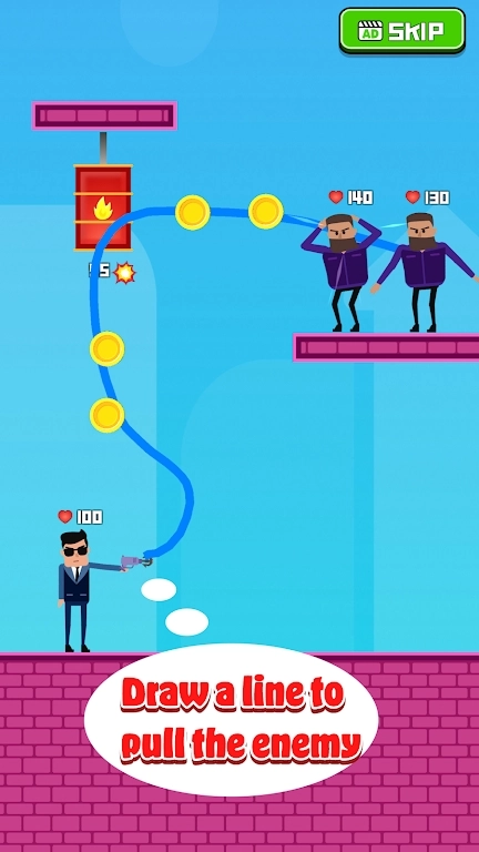 1、操控英雄在关卡里移动,瞄准并攻击敌人,达成任务目标;