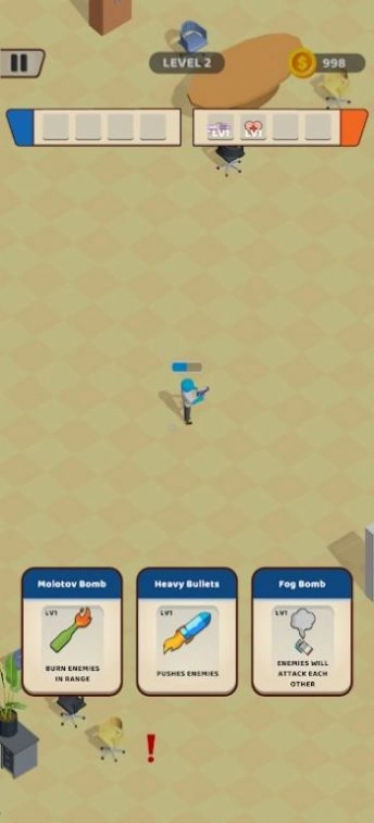 2.躲避敌人的子弹等攻击,同时向他们开火,别错过升级的机会。