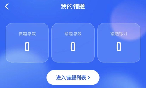 首先我们要打开软件,接着就能看到最下方有一行选项,其中包含【题库】;点击打开【题库】后,在界面上方可以找到【我的错题】选项,点击进入该选项,就能查看自己的错题了。这里会直接展示出【做题总数】【错题总数】以及【错题练习】这几个板块。