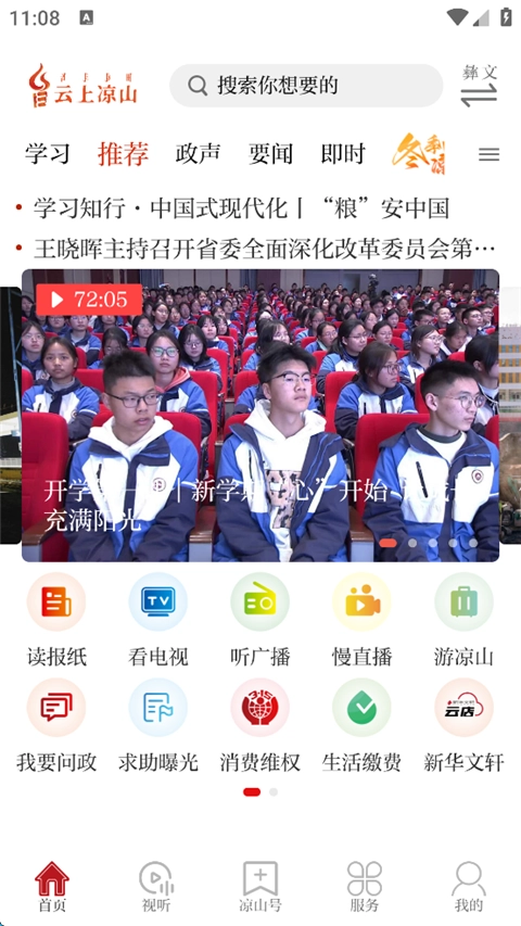 这款掌上移动客户端产品,以呈现凉山本土要闻与资讯为核心,集新闻咨询、网络视听、电视直播、便民服务等功能于一体。