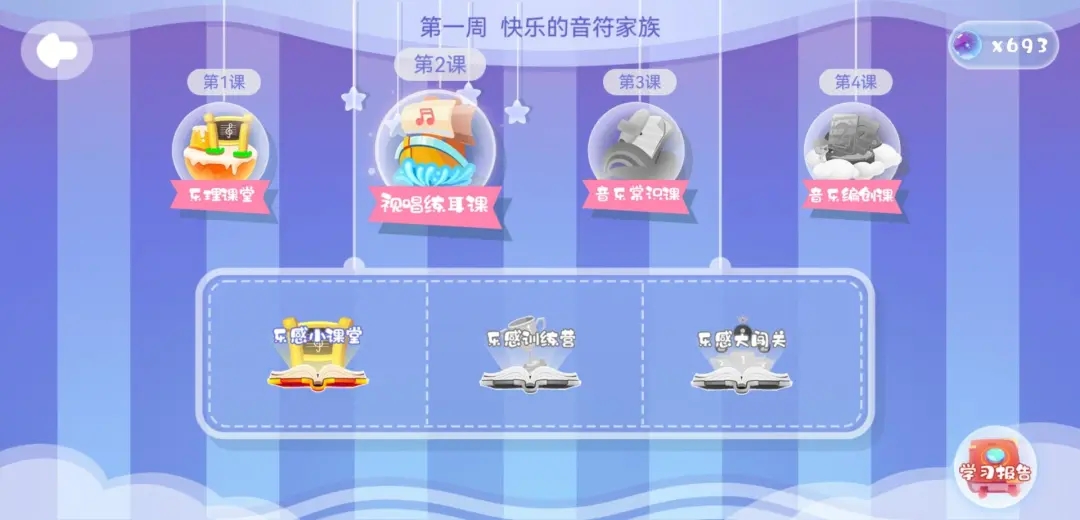 环境中感受快乐,学会认知世界。dodo音乐启蒙课的课程设计环环相扣,如同一场“通关游戏”——只有完成当前“关卡”的
