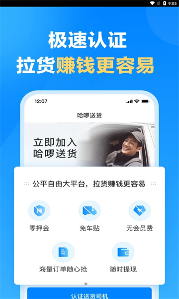 注册司机可享受免会员费、免车贴、免押金的福利,开城首月零抽佣,与同类型送货平台相比,工作更自由、无压力。