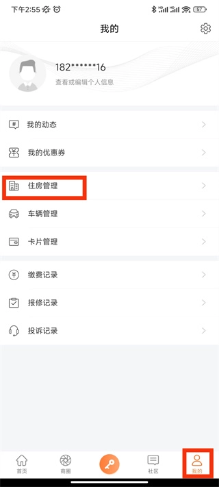 当然你也可以在我的页面中,点击住房管理;