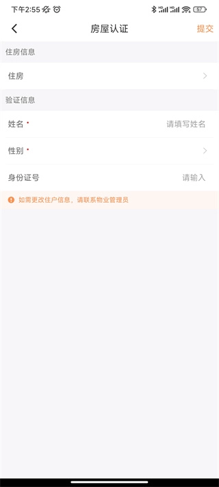 根据申请身份及物业要求,填写相关信息完成住房认证即可。