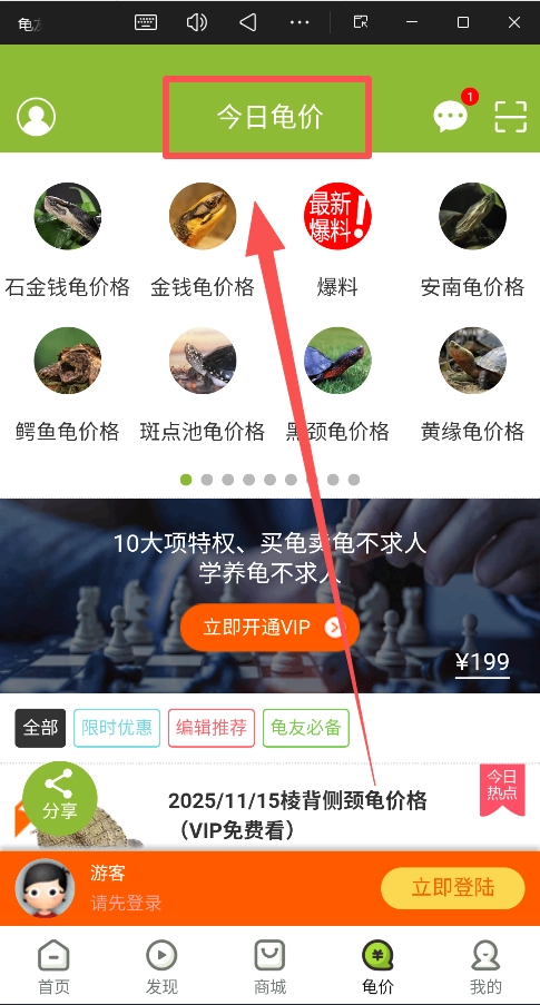进入“龟价”板块,尝试查看价格。若想获取详细数据,可考虑开通VIP会员。