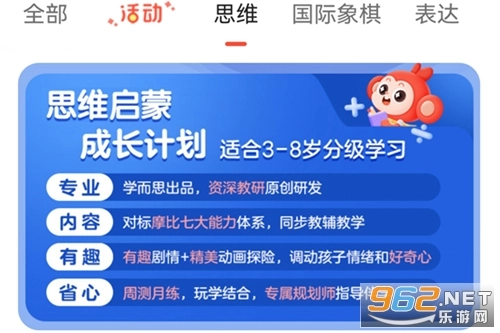 「思维」把握思维发展的关键敏感期,通过体系化的“玩中学、学中玩”模式,稳扎稳打地夯实基础,实现能力的螺旋式上升。