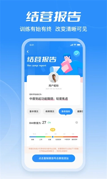 使用过程中若有任何问题,欢迎随时反馈;我们致力于为用户解决更多健康困扰,快来探索丰富的课程内容,让每个人都能为自身健康保驾护航。你可以随时设置运动提醒,唯有坚持,才能改善身体状况。通过创新与数字化服务,我们重构男性健康理念,用户可借助定制化运动及饮食方案,解决自身的难言之隐。每位男性都能在这里找到专属解决方案,快来加入训练吧!