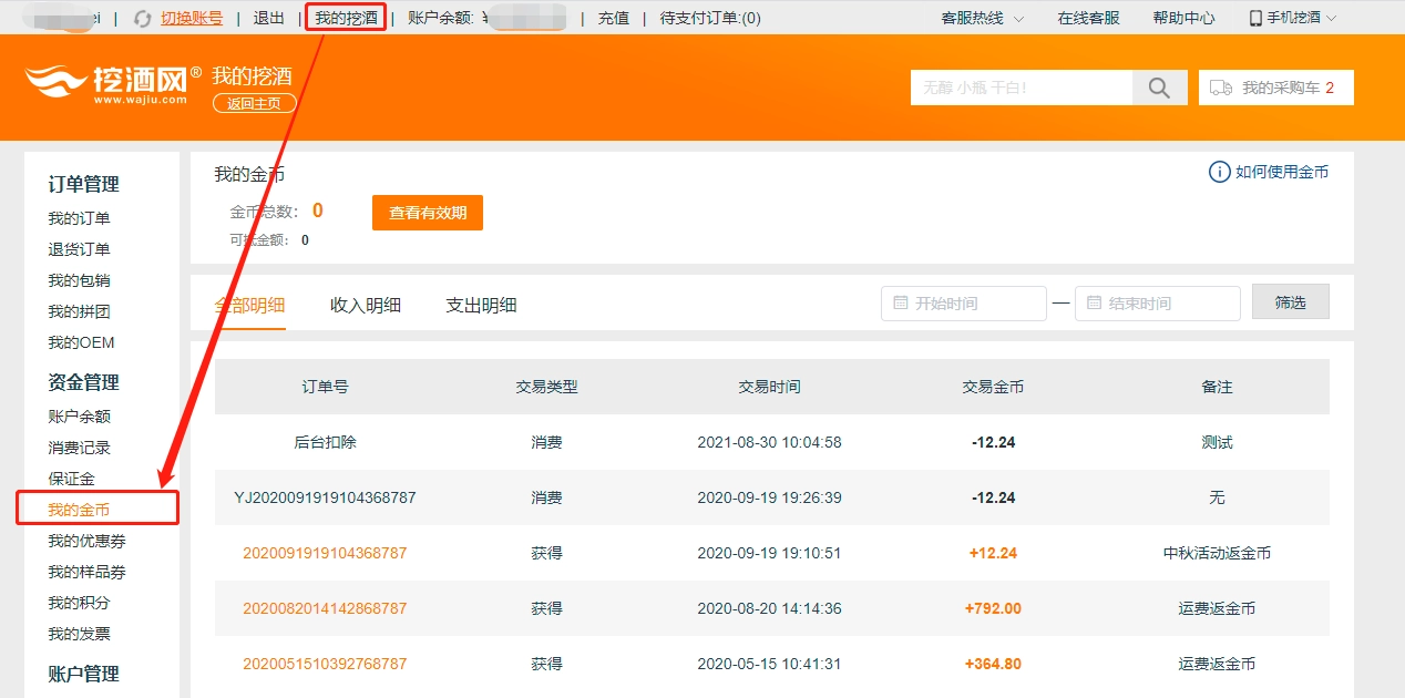 在使用金币前,建议您先确认手中金币的状态,具体可通过“我的挖酒”进入“我的金币”页面进行查看。