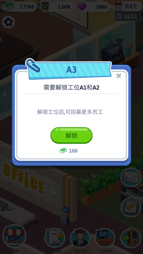 打开空闲办公室大亨中文版最新版,进入游戏如图;