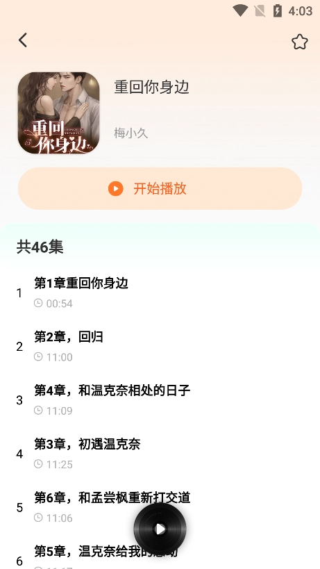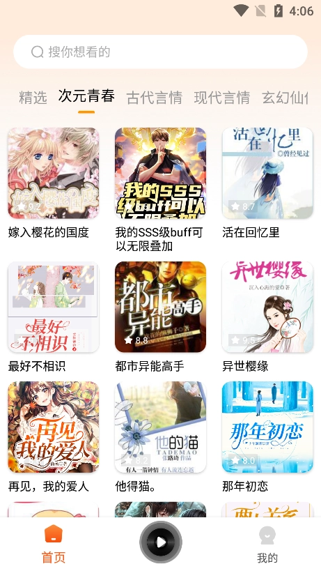 选择喜欢的小说进入到播放页面