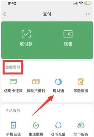 在“金融理财”下,选择“理财通”。