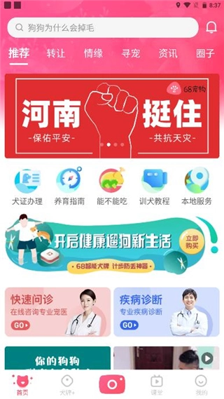 68宠物是一款面向爱犬人士的手机生活服务应用,用户既能通过它购物、学习养犬知识,部分城市还支持线下服务。足不出户就能在线提交养犬许可证的申请材料,省去排队和多次奔波的麻烦,申请通过后直接前往附近的养犬许可免疫便民服务点办理即可,切实满足了养宠用户的便利需求。