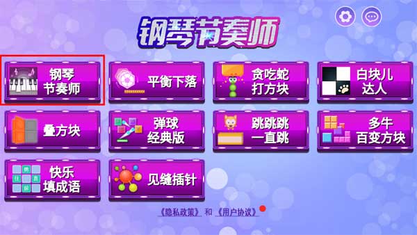 打开游戏后,你会发现里面有不少十分有趣的音乐类和益智类游戏,接着点击钢琴节奏师即可。