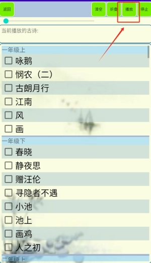 点击播放按钮后,系统便会启动朗读功能,您可以通过跟读来更有效地把握诗词的语音特点和节奏韵律。